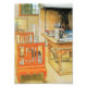 O escritório de Carl Larsson com sua garotinha a espreitar pelos degraus de um banco de laranja. O fundo inclui mesa com os artistas escovas e suprimentos. É uma cena da casa do artista.