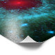 Cometas apanha pó na Nebulosa Helix. Essa imagem infravermelha do Telescópio Espacial Spitzer da Nasa mostra a Nebulosa Helix, uma estrela cósmica muitas vezes fotografada por astrônomos amadores por suas cores vivas e semelhança com um olho gigante. A nebulosa, localizada a cerca de 700 anos-luz da constelação Aquário, pertence a uma classe de objetos chamada nebulosas planetárias. Descobertas no século 18, essas linhagens coloridas foram nomeadas por sua semelhança com planetas gigantes do gás como Júpiter. As nebulosas planetárias são os restos de estrelas que outrora se pareciam muito com o nosso sol. Quando estrelas como o sol morre, elas empurram as camadas gasosas externas. Essas camadas são aquecidas pelo núcleo quente da estrela morto, chamada de anã branca, e brilham com cores infravermelhas e visíveis. Nosso próprio sol vai florescer em uma nebulosa planetária quando morrer em cerca de cinco bilhões de anos. Na visão infravermelha de Spitzer da nebulosa Helix, o olho se parece mais com o de um monstro verde. A luz infravermelha das camadas gasosas externas é representada em azul e verde. A anã branca é visível como um pequeno ponto branco no centro da imagem. A cor vermelha no meio do olho denota as camadas finais de gás queimadas quando a estrela morreu. O círculo vermelho mais claro no centro é o brilho de um disco empoeirado circulando a anã branca (o disco em si é muito pequeno para ser resolvido). Essa poeira, descoberta pela visão infravermelha de Spitzer, que buscava calor, foi provavelmente chutada por cometas que sobreviveram à morte de sua estrela. Antes de a estrela morrer, seus cometas e possivelmente planetas teriam orbitado a estrela de forma ordenada. Mas quando a estrela explodiu suas camadas externas, os corpos gelados e os planetas externos teriam sido jogados uns contra os outros, resultando em uma tempestade de poeira cósmica contínua. Qualquer planeta interior do sistema teria se queimado ou sido engolido à medida que sua estrela morrendo se expandia. Até agora, a nebulosa Helix é um de apenas alguns sistemas de morto-estrela nos quais foram encontradas evidências para sobreviventes de cometas. Esta imagem é feita de dados da câmera de matriz infravermelha do Spitzer e do fotômetro de imagens multibanda. O azul mostra luz infravermelha de 3,6 a 4,5 mícrons; o verde mostra luz infravermelha de 5,8 a 8 mícrons; e o vermelho mostra luz infravermelha de 24 mícrons.