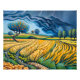 Esta pintura cativante captura a beleza e o drama de um campo de trigo apanhado numa tempestade súbita. As ondas de ouro de trigo se curvam sob as sombrias nuvens escuras, enquanto um feixe de luz solar se rompe, iluminando a cena com um toque de esperança. Esta peça certamente adiciona um toque de charme rústico e elegância natural a qualquer casa.
