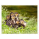 Um belo bando de patos-reais olha de seu nariz macio ao lado de um lago quieto.