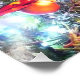 Uma pintura digital de ornamentos e luzes de férias em um pinheiro.