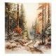 Uma representação aquosa de 2 cabines rusticadas na floresta durante o outono.