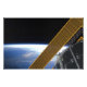 Painéis de matriz solar na Estação Espacial Internacional recuaram no horizonte da Terra em destaque com o STS-126.