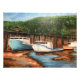 Vila de pesca: pintura acrílica original/ paisagem de IMPRESSÃO. Barcos de pesca de baixa distância com paisagem da vila no fundo.Arte e Decor de Parede. Artista Tanya Arseneau Nanniesfineart