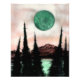 Árvores Eververdes de altura hetero e à esquerda e à direita nesta pintura de paisagem de fantasia do artista Jason Girard de cores verdes a castanhas ao longo do trabalho com cinzas para um primeiro plano de cores muito escuras com cordilheira no fundo.