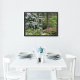 Foto impressão que mostra a imagem fotográfica de uma floração branca de Viburnum e de uma florescência rosa de Rhododendron num jardim florestal. Uma bela imagem botânica! Personalize o tamanho do seu impressão, conforme desejado.