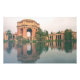 O Palácio de Belas Artes em São Francisco é capturado em uma fotografia serena, mostrando sua arquitetura icônica refletida em uma lagoa estática. O prédio, com a sua cúpula e colônias distintivas, se posiciona majesticamente contra um céu macio e nebuloso. Lush greenery rodeia a estrutura, adicionando um toque de vibração à cena.