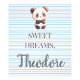 Traga um senso de calma e charme para o espaço do seu pequeno com esta impressão de foto personalizada de panda tudo-em-um. Este design de retrato apresenta um panda fofo, colocado contra um fundo moderno de listras suaves em azul e branco.