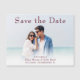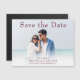 Foto moderna do casal Wedding Salve o ímã do cartão de anúncio Data com uma letra burgundy.