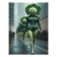 Uma imagem surreal e provocadora que mostra uma linha de figuras vestidas em figurinos elaborados com o tema repolho andando por uma rua úmida da cidade. Cada figura veste um grande e realista chapéu de repolho e uma folha verde que se estende pelas pernas, como uma fusão de humanos e vegetais. As figuras são vistas de um ângulo ligeiramente baixo, com altura, prédios de cinzas ao fundo e espectadores observando nas calçadas. A atmosfera parece um pouco úmida e nebulosa.