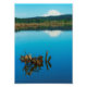 Na superfície clara de um corpo de água, é reflexo de um conjunto de ramos de árvores que se projetam da água, e o Monte Rainier atrás de uma linha de árvores que borda o corpo de água. Fotografia Copyright ©2018 Kimberly J Tilley.