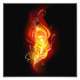 Pena de pavão brilhante feita de fogo e chamas sobre fundo negro.