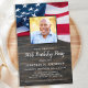 CONVITES DE ANIVERSÁRIO da bandeira americana. Convide amigos e família para a sua celebração patriótica de aniversário com estes convites modernos da bandeira americana. Personalize este convite da bandeira americana com seu evento, foto, nome e detalhes da festa. Este convite à bandeira americana também é perfeito para a aposentadoria militar, para o partido soldado que vai embora, para a graduação militar, para a celebração do lar de soldados, para mudar o texto na personalização do evento. Veja nossa coleção para dar presentes patrióticos, favoritos para festas e suprimentos de aniversário. COPYRIGHT © 2021 Judy Burrows, Black Dog Art - Todos Os Direitos Reservados. Foto personalizada patriótica Convite de Aniversário da Bandeira Americana