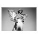 Um anjo em cima de uma tumba olhando para baixo sobre uma tumba infantil que morreu há mais de 100 anos, localizada em um cemitério histórico em McKinney Texas.