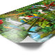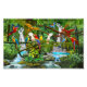 Uma floresta tropical com belas cachoeiras e folhagem da selva fornece um santuário seguro para estes papagaios coloridos no paraíso. Foto realista, esta pintura digital de óleo acentua as melhores imagens da natureza dos nossos amigos presos.