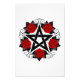Pentagrama preto com padrão, decorado com floração, rosas vermelhas com folhas em fundo branco. Tatuagem.