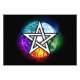 Pentagrama luminoso desenhado artificialmente com cinco elementos mágicos, água, terra, fogo, astral, ar sobre fundo negro. Pentagrama Wiccan. Wicca