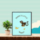 Poster com macaquinho engraçado com bananas em fundo de turquesa