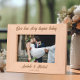Esta moldura gravada mostra a citação: Nossa história de amor começa hoje — escrita em um tratamento elegante e gravada na moldura de madeira. Personalize-o com o nome da noiva e do noivo e a data do casamento. Um belo guardião para recém-casados.