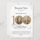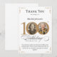 Foto personalizada Dourada 100º Cartões de agradecimentos de aniversário. Um cartões de agradecimentos especial de celebração de aniversário, elegantemente projetado, com uma foto personalizada de pessoa de aniversário e caligrafia de script com elementos florescentes de vintage. Simples o suficiente para ajustado de uma variedade de temas e cores! Precisa de ajuda com o modelo? Basta entrar em contato comigo!