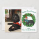 Bela Cartoon Personalizada Labradoodle, malvado, mas belo cachorrinho! - Labradoodle malicioso caminhando com enfeites de natal e enredado em luzes de natal! Festiva borda da coroa de natal. Personalize com sua foto e seu nome para criar uma placa de cartões de natal exclusiva para amantes do labradoodle! © EMR. Designs.
