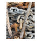 Correntes de pesca ferrugem e corda achada num jato. Um design fotográfico.
