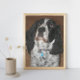 Imortalize um animal favorito com uma impressão de fotos ampliada. Aqui está um adorável cão branco e preto Springer Spaniel. Selecione a sua impressão de fotografia com a sua própria foto de animal de estimação e selecione o tamanho da impressão. Impressão de foto mostrada com o enquadramento apenas para fins de exibição.