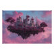 An ancient stone castle with towering spires and weathered ruins floats majestically among billowing pink and magenta clouds, its rocky base draped in cascading vines and lush crimson foliage. Starry highlights and soft atmospheric mist add depth and wonder to this dreamlike fantasy scene. This captivating digital artwork blends medieval grandeur with surreal beauty, ideal for canvas prints, posters, phone cases, mousepads, throw pillows, tapestries, and décor that brings enchanting aerial adventure into any space.
