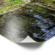 Dress up a wall with this photo print that features a photographic image of a pink cherry blossom tree in bloom alongside a pond. Customize your photo print size as desired.