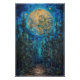 Bitmoney para a lua. Satoshi diz hodl. Linda pintura a óleo com bitmoney como lua numa floresta. Comprar BTC.