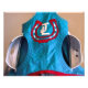 Um piscar de corrida azul e branco nas estábulas do Joe Mazza no Parque Belmont. Os persianas são bordados com o emblema do proprietário de um sapato de cavalo com as letras "JL" dentro do calçado. Fleetphotoname