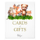 Melhore a decoração do chá de bebê com esta encantadora placa de cartões e presentes para bebês de animais da floresta. Com deliciosas criaturas da floresta, esta placa encantadora é a adição perfeita para a sua celebração. Guie os convidados sobre onde deixar seus votos de felicidade e presentes com este toque adorável da natureza para o seu chá de bebê.