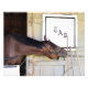 Este potro escuro do estábulo Todd Pletcher é muito curioso enquanto estimula o pescoço muscular do lado de fora da porta de sua banca para ver mais de perto o punho do rasto. Lá atrás no celeiro mais antigo da corrida americana "Horse Haven" Este belo polo mostrando seu magnífico homem negro, enquanto ele apenas olha para brincar com aquele poste. Fleetphotoname
