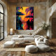Este vibrante diseño de pop art captura la silueta de personas disfrutando de una noche en un café tropical, con un fondo lleno de colores cálidos y palmeras. La escena transmite la atmósfera relajada y social de una noche bajo las estrellas. Perfecto para quienes buscan añadir un toque de exotismo y modernidad a sus espacios, este póster es ideal para decorar hogares y oficinas con una expresión artística y vibrante.