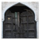Fotografia de uma velha porta de madeira fretada para uma igreja ou templo