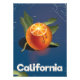 Poster de viagens californiano de férias com laranja fatiado.