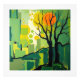 A imagem é uma pintura abstrata e texturizada que retrata um pôr do sol vibrante sobre a água. O sol laranja intenso é o ponto focal, refletindo-se na superfície escura da água com pinceladas de luz. A paleta de cores transita do laranja e amarelo quentes, que representam o céu no crepúsculo, para tons mais frios de azul e preto que dominam a porção superior direita e a parte inferior da pintura, sugerindo a transição do dia para a noite e a presença da paisagem noturna ou da água. A textura proeminente adiciona profundidade e dramaticidade à cena, com acúmulos de tinta que podem evocar a sensação das nuvens, da superfície da água ou até mesmo da terra ou rochas na margem. A obra evoca uma atmosfera de intensidade e transição, capturando a beleza dramática de um pôr do sol.