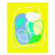 Um punhado de planos e linhas curvos em entrelaçamento azul, esverdeado e branco na superfície amarela deste poster.