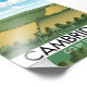 Cambridge "por uma pausa", belo poster de viagens de trem ao estilo vintage do incrível campo rolante do verão.