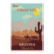 Poster de viagens moderno do estilo retrovintage para Pheonix, Arizona, Estados Unidos com a ilustração digital vetor de horizonte de cowboy e skyline de cidade em tons de silhueta azul