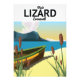 Lizard Cornwall costuma poster de viagens com um barco de pesca na praia.