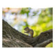 Um pequeno e bonito pedaço é ilustrado em perfil enquanto está em uma pose de oração. Cores de outono mexidas melhoram a cena.