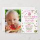 Convite de aniversário de melancia fotográfica para menina. Um de uma festa de melão. O convite é para o primeiro aniversário (primeiro aniversario) do seu docinho. Convide seus amigos para uma doce celebração com este convite de melancia rosa e verde.