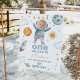 Primeiro Trip em torno do Sinal de Boas-vindas do primeiro aniversario Sol Espaço exterior doce ou primeira viagem ao redor do sol, primeiro sinal de boas-vindas de aniversário para um menino que apresenta a foto do seu filho no capacete espacial. Esta primeira viagem ao redor do sinal de boas-vindas ao primeiro aniversario do sol também apresenta um pequeno sol, planetas, estrelas, nave espacial e homem espacial.