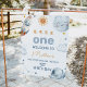 Primeiro Trip em torno do Sinal de Boas-vindas do primeiro aniversario Sol Espaço exterior doce ou primeira viagem ao redor do sol, primeiro sinal de boas-vindas de um bebê com sol, lua, estrelas, nave espacial e astronauta.