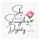 Ela é vestida com força e dignidade - Provérbios 31:25 Verso de Bíblia com Design Rosa de Solteiro. Escritura de bíblia excelente para todas as mulheres.