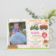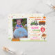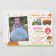 Foto: Pumpkin, convite de aniversário de Aniversário de Aniversário de Aniversário de Fall Fall. Convide seus amigos com este brilhante e colorido convite para o tema do Festival de outono de outono! Este convite vermelho, laranja, cor-de-rosa e verde do outono apresenta um pequeno espantalho bonito segurando um balão vermelho, trator verde com abóboras e algumas folhas ao redor. Basta mudar a foto e editar este modelo de personalização fácil de usar para torná-la especial.