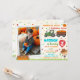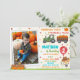 Foto: Pumpkin, convite de aniversário de Aniversário de Aniversário de Bash Fall, convite para o rapaz. Convide seus amigos com este brilhante e colorido convite para o tema do Festival de outono de outono! Este convite vermelho, laranja, azul e verde do outono apresenta um pequeno espantalho bonito segurando um balão vermelho, trator verde com abóboras e algumas folhas ao redor. Basta mudar a foto e editar este modelo de personalização fácil de usar para torná-la especial.