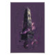 A high-quality wall art poster featuring a highly detailed illustration of a dark, shattered occult obelisk. The black stone monolith radiates vibrant cosmic purple and pink energy, set against an intricate silver summoning circle and arcane runes on a clean background. Perfect for adding an edgy, arcane, or dark fantasy aesthetic to bedrooms, creative studios, or esoteric spaces. Vibrant, high-resolution printing on premium paper.