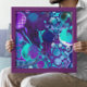Pour painting style abstrato fluid art em azul, roxo, lacre e turquesa.
